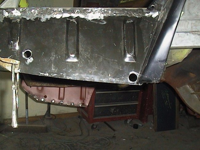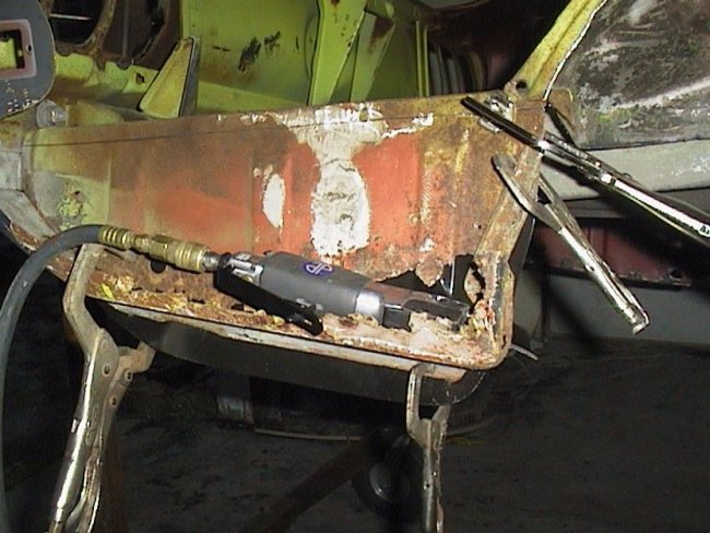 Here is what was left of the Right Trunk Dropoff once the quarter panel and windowscreen bondo job was removed. It is definitely not savable.