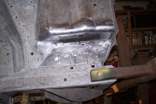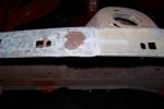 A little filler was used for detailing. It should be noted that I did not reproduce the factory spot welds since most of them including the VIN was to be covered with the fender once it was installed. Too bad, the VIN came out looking pretty clear. There are a couple methods one can use to reproduce the spot weld look. You could heat a spot till its cherry red and hit it with a hammer and a fat punch. Or you can take a dremmel tool and grind out a recess at the plug welds.