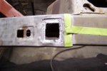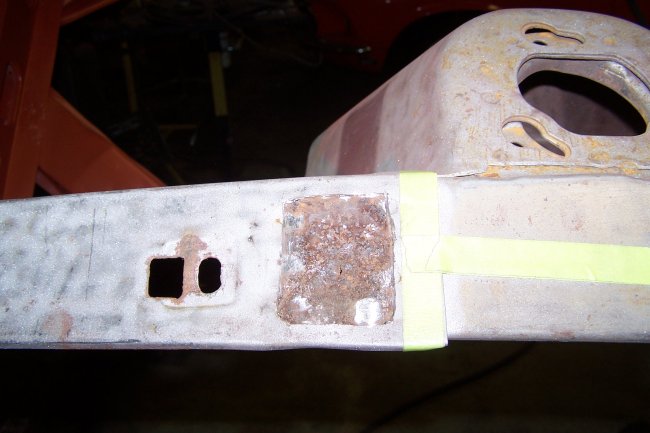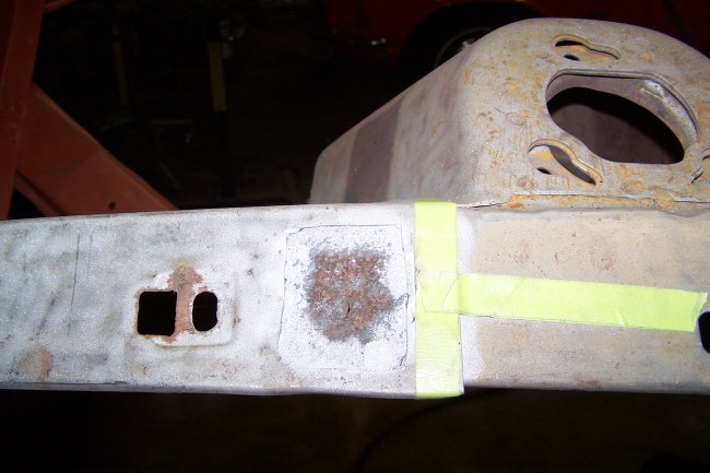 The next thing I did was to cut out the top section of the shocktower that was pitted. The idea, hopefully, is to cut out a smaller square then the one that was cut in the fender apron. This will make the welding easier