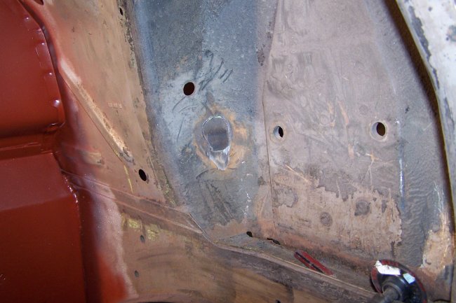 The next thing I did was to sandblast the hole clean. The idea here was to remove all of the rust and to find where the metal that was not rust pitted.