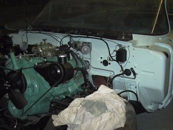 With the car safe inside I started to redo all of the firewall components. In this picture everything is finished except for the installation of the steering column