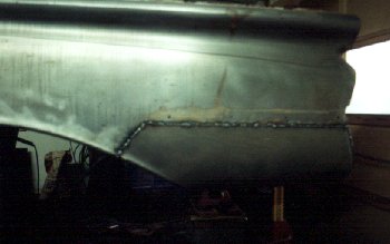 the original quarter only at the top and halfway down the side. The wheelwell portion