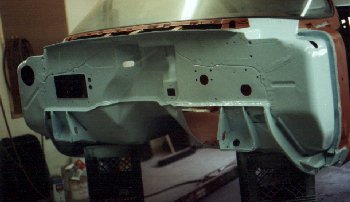 With the rear quarters done I moved to the firewall. Here it is stripped of all paint.