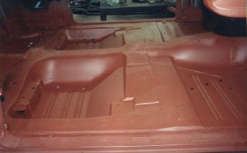 I primed the rust-free floorpan with red oxide primed, just like the factory originally did.