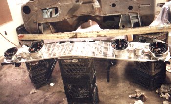 Here are the radiator support pieces after painting. I am missing the upper filler panel